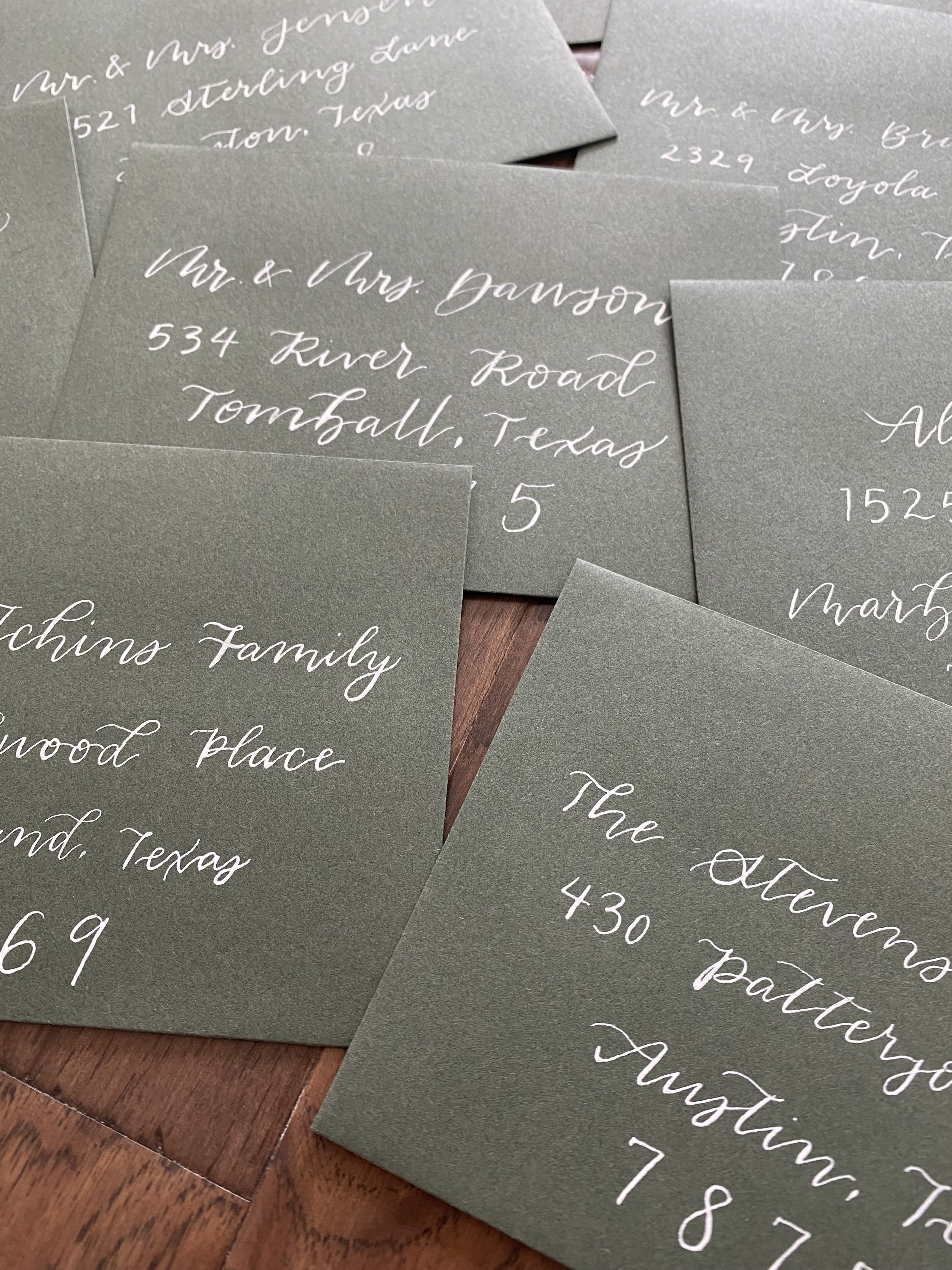 Nothing compares to receiving hand-addressed event and wedding invitations in the mailbox. I specialize in modern calligraphy created with brush pens to create a stunning, modernized bold style for envelope addressing.